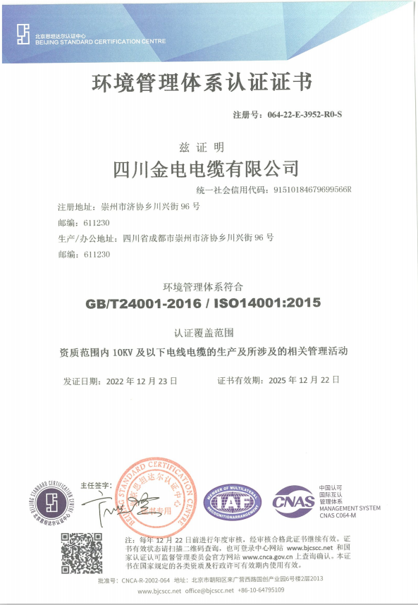 四川金電電纜有限公司位于“享譽中外”的天府之國成都市,公司始建于1998年,現擁有固定資產6000萬元,廠區占地面積17000平方米,建筑面積15000平方米,現有職工80人,科學技術人員15人,銷售人員12人,具有現代企業管理和專業技術才能。 公司擁有國內一流的線纜生產設備和質量檢測設備;建有完整、快捷的銷售和服務網絡,初步形成了“科技化生產、規范化管理、優質化服務、集約化經營”的科學發展格局。產品質量 企業以完善的質量管理通過了ISO9001:2015國際質量體系認證、ISO14001:2015國際環境質量體系認證和ISO45001:2018職業健康安全管理體系認證。全部產品均獲得國家工業部質量技術監督局頒發的生產許可證及國家強制性CCC認證。銷售網絡 公司建立完善的市場營銷體系,實施“品牌營銷和網絡營銷”相結合的發展戰略,金電產品暢銷全國各地及遠銷東南亞等國家和地區。深受廣大客戶的信賴和支持,并為眾多重點項目所選用。 公司大力推進技術創新,資本運營,國際化拓展三大戰略,全面推動金電由傳統企業向高新技術產業轉型,全力打造國際型企業,進行全球化經營。 ...